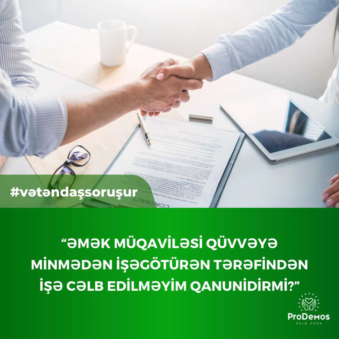 İnzibati Xətalar Məcələsinin 192.1-ci maddəsinə əsasən, Əmək Məcəlləsində nəzərdə tutulmuş qaydada əmək müqaviləsi (kontraktı) hüquqi qüvvəyə minmədən işəgötürən tərəfindən fiziki şəxsləri hər hansı işlərin (xidmətlərin) yerinə yetirilməsinə cəlb edilməsinə görə fiziki şəxslər 1000 manatdan 2000 manatadək məbləğdə, vəzifəli şəxslər 3000 manatdan 5000 manatadək məbləğdə, hüquqi şəxslər 20000 manatdan 25000 manatadək məbləğdə cərimə edilir. Eyni halların 10 və ya daha çox işçi barəsində baş verməsi isə cinayət məsuliyyəti yaradır və 7000 manatdan 10000 manatadək miqdarda cərimə və ya 2 ilədək müddətə islah işləri və ya 2 ilədək müddətə azadlığın məhdudlaşdırılması və ya 2 ilədək müddətə azadlıqdan məhrum etmə ilə cəzalandırılır.